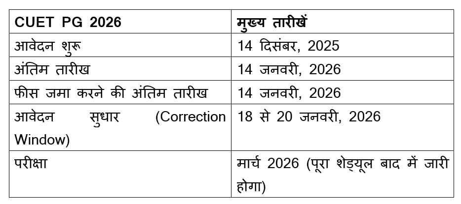 सीयूईटी पीजी 2026 से जुड़ी ज़रूरी तारीखें
