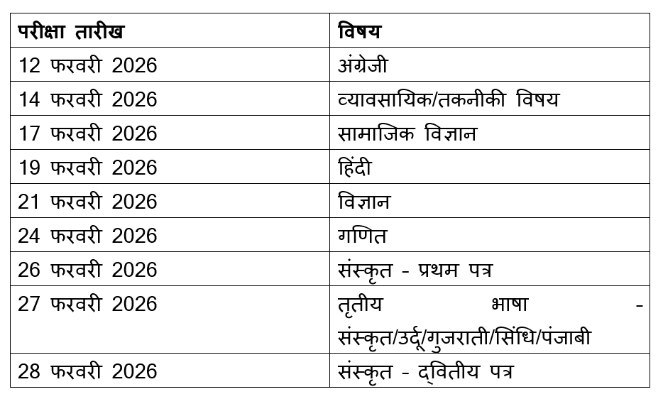 - कक्षा 10वीं परीक्षा समाप्त होने की तारीख: 28 फरवरी 2026